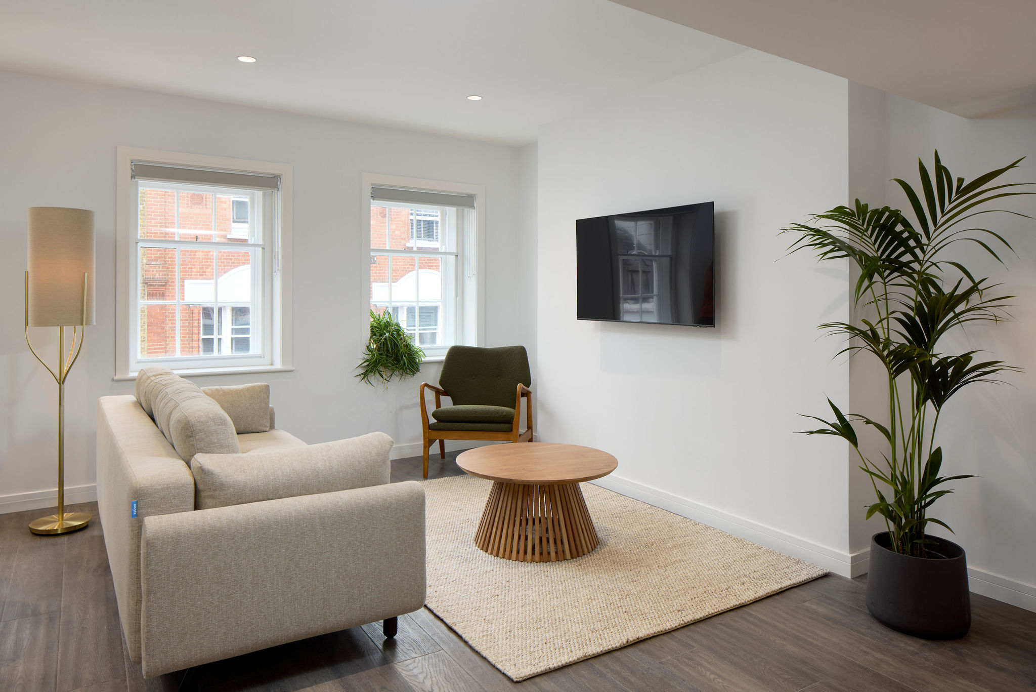 The apartments are located in a newly refurbished (Summer 2021) terrace on Great Portland Street. Just four minutes walk from Oxford Circus and one minute from the iconic Broadcasting House, HQ of the BBC.